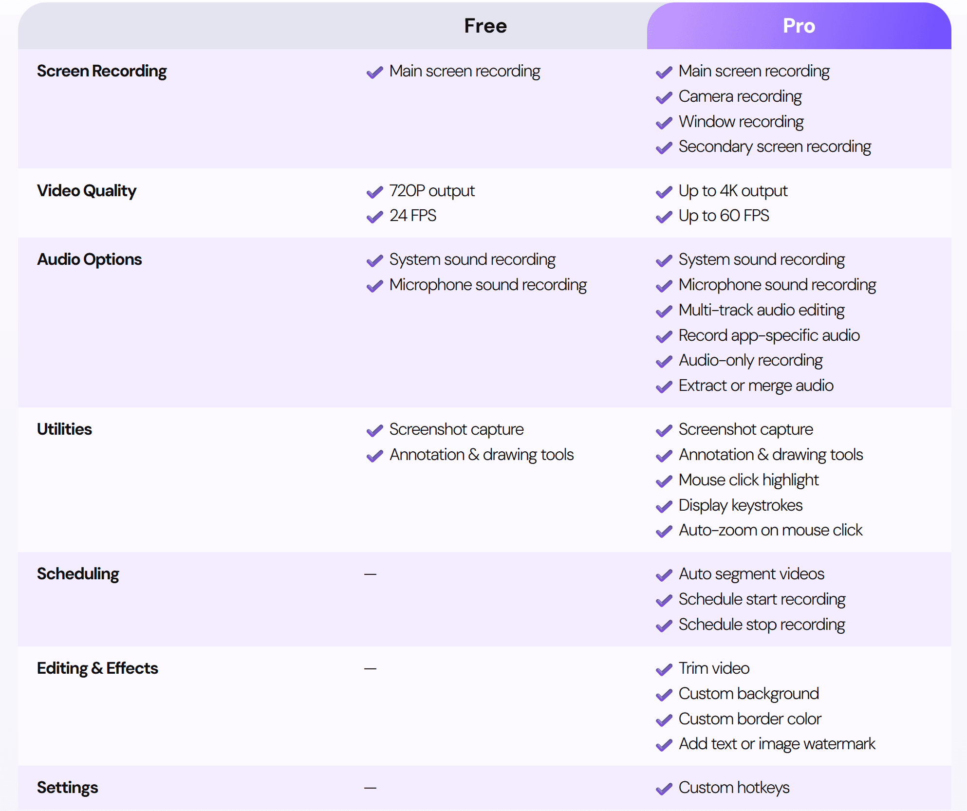 Is it free? Yes — with 10 free full-access uses (with Pro features). After that, basic screen & audio recording stays free.