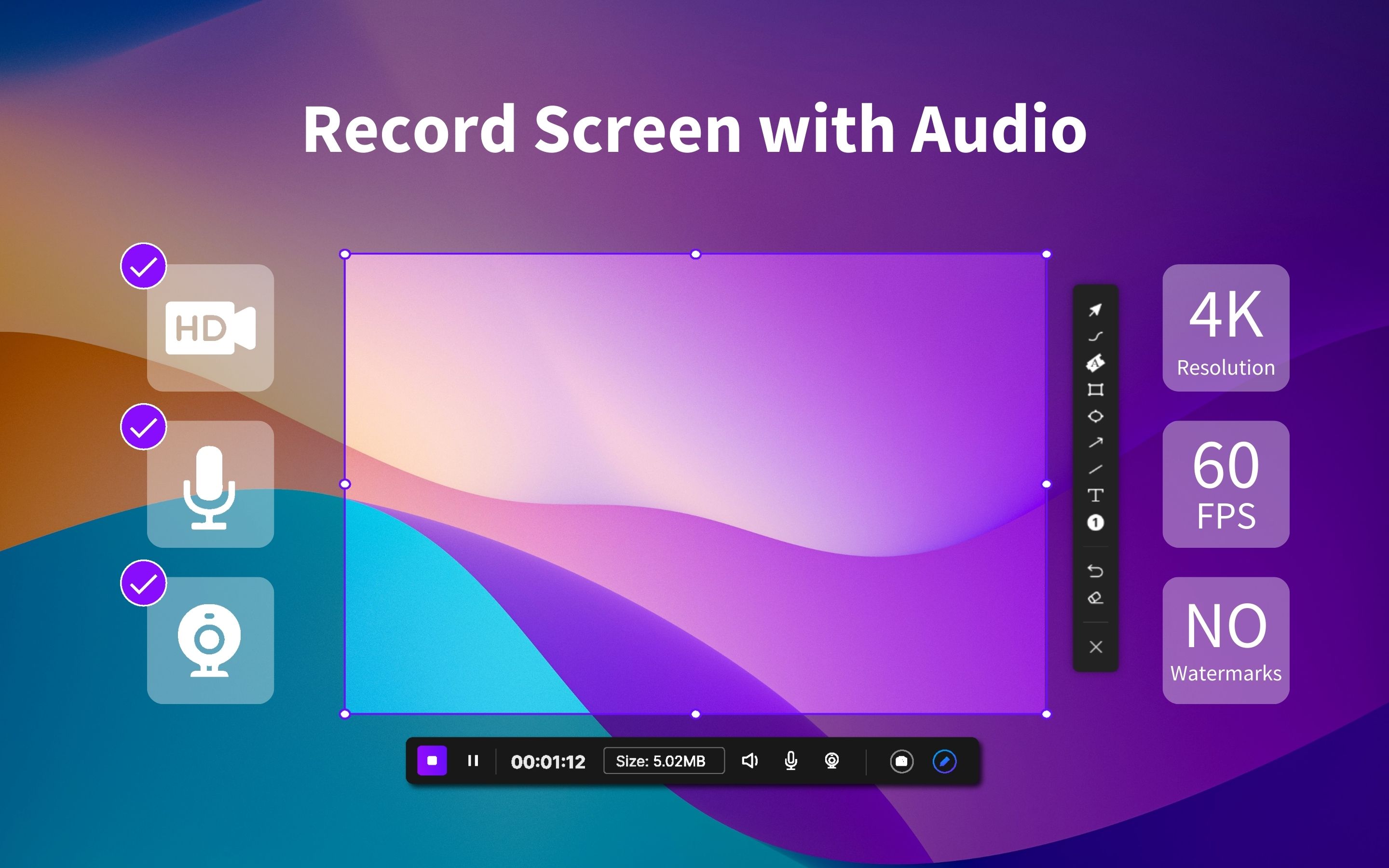 Free version - First 10 free full-access uses (with Pro features). After that, basic screen & audio recording stays free.